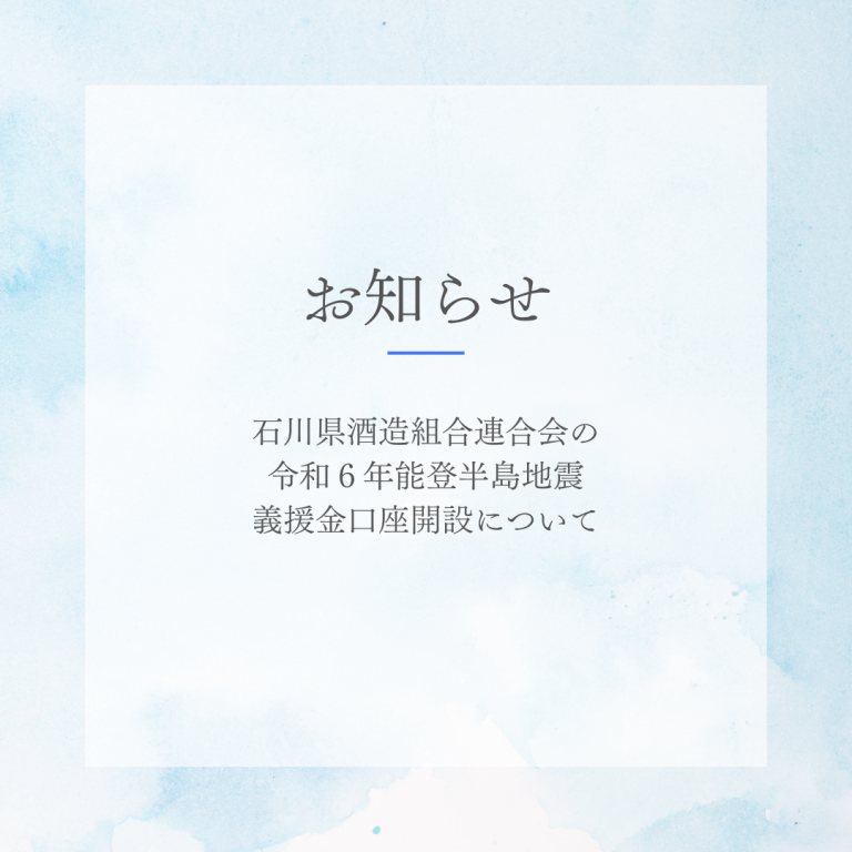 令和6年能登半島地震【石川県酒造組合連合会義援金口座のお知らせ】