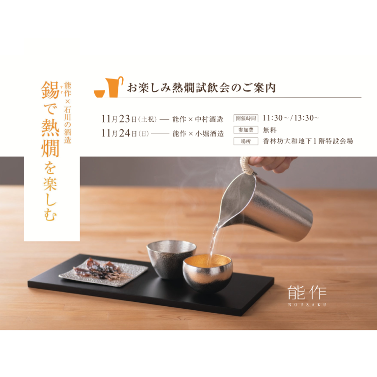 香林坊大和 2024 お歳暮特別企画「能作×石川の酒造 錫で熱燗を楽しむ」お楽しみ熱燗試飲会 参加のご案内